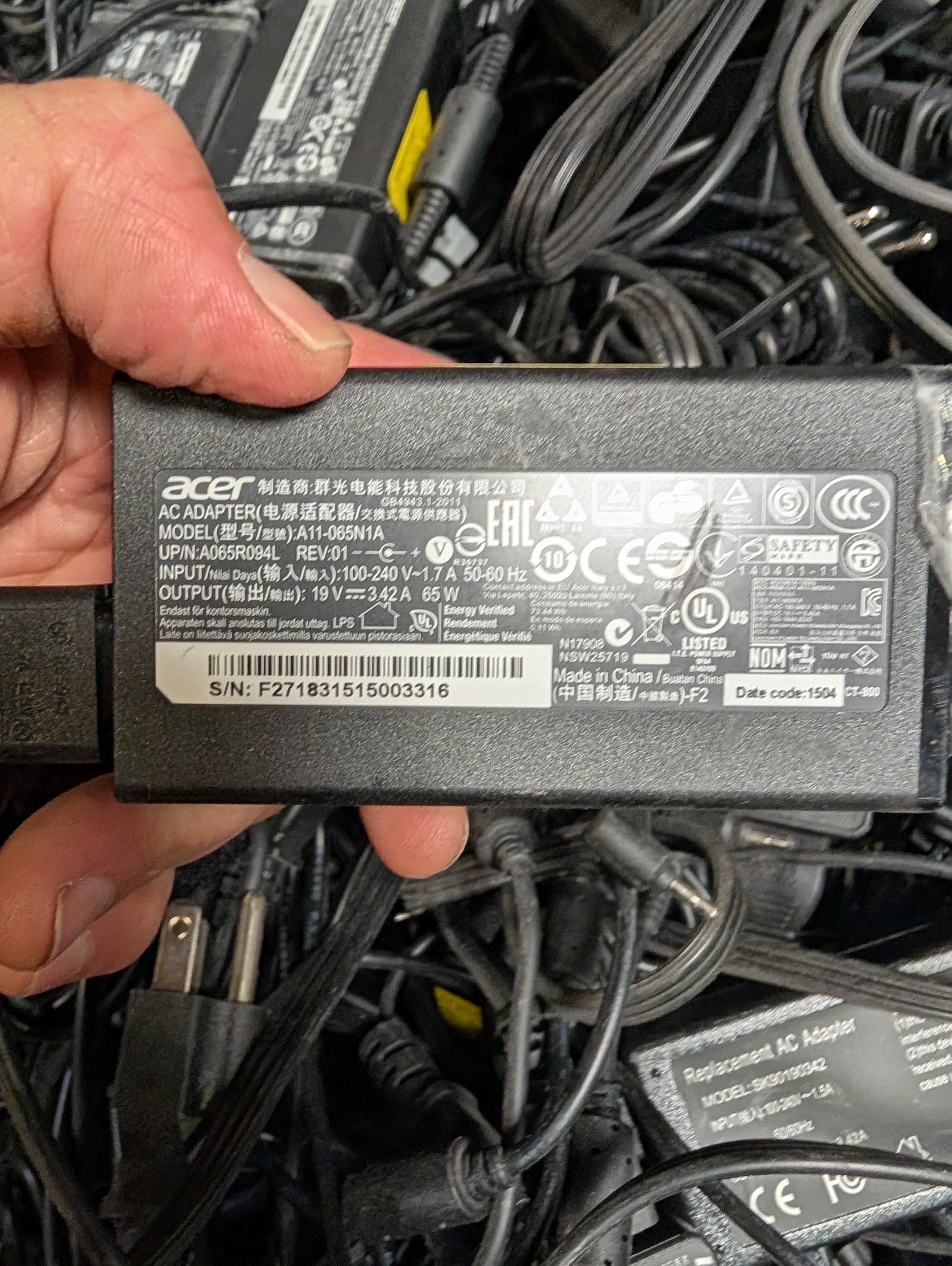 Bulk Lot: 45,000 Original OEM Laptop AC Adaptors – 20’ Container – Dell, Lenovo, Acer – No Scrap!